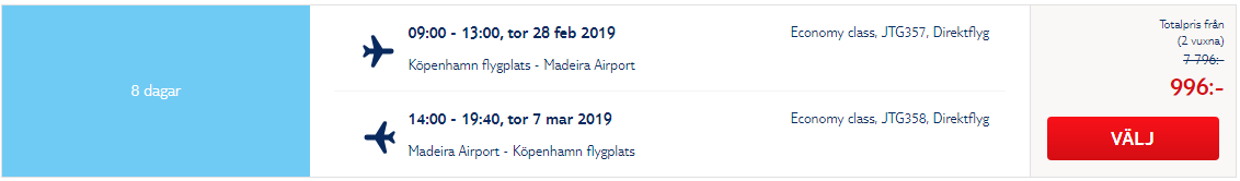 ✈Копенгаген — Мадейра — Копенгаген с 28/02 по 7/03 за 47€ с человека