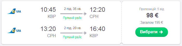 ✈Киев — Копенгаген — Киев с 27/02 по 8/03 за 98€ с человека